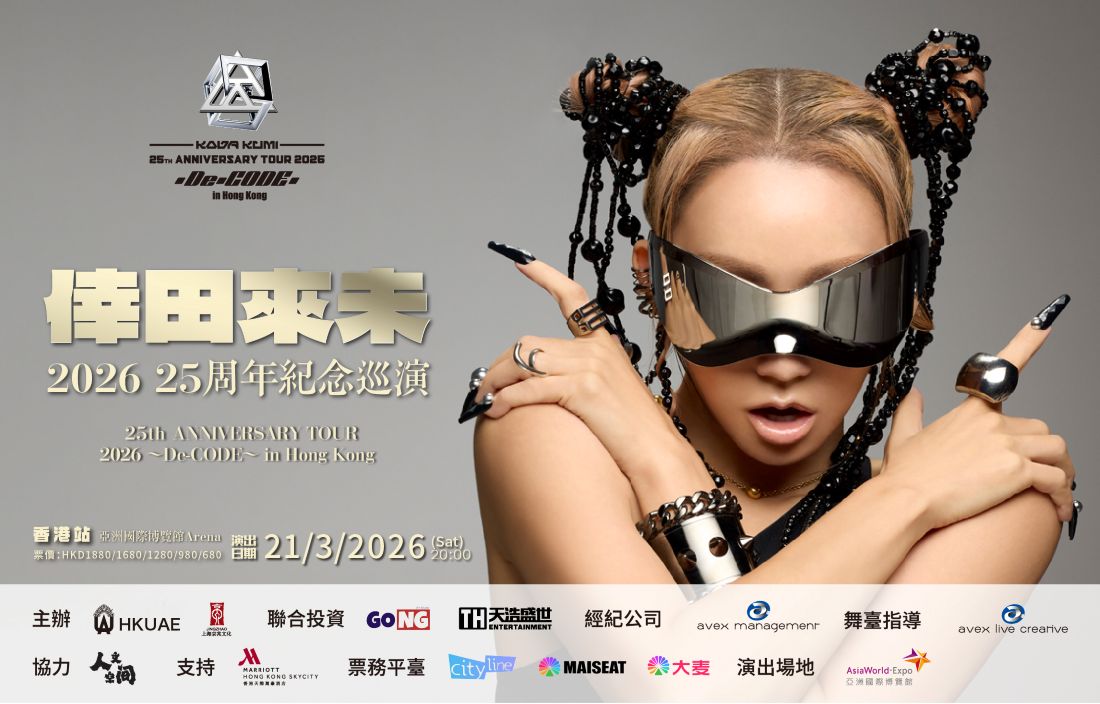 After 13 long years away from Chinese-speaking audiences, she’s gifting Hong Kong the exclusive overseas stop of her 25th anniversary tour “De-CODE”! Stage design, choreography—every detail mirrors Japan’s top-tier production standards, promising a mind-blowing live spectacle you won’t forget.